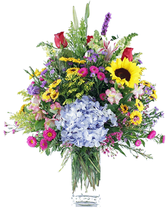 Uzun cam vazo içerisinde yok yok.Mevsimin tüm çiçekleri kullanılarak oluşturulan aranjmanın güzelliği görenleri büyülüyor.Hayatın içinden tüm çeşitlerle bir araya gelen çiçekler bütün güzellikleri içinde barındırıyor.